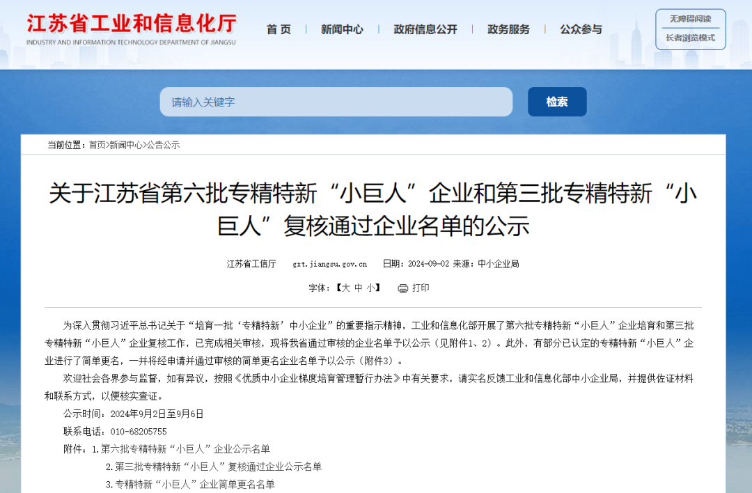 根據(jù)工信部統(tǒng)一部署,江蘇省工信廳于2024年9月2日發(fā)布了《關(guān)于江蘇省第六批專(zhuān)精特新“小巨人”企業(yè)和第三批專(zhuān)精特新“小巨人”復(fù)核通過(guò)企業(yè)名單的公示》,其中江蘇曼荼羅軟件股份有限公司、丹陽(yáng)慧創(chuàng)醫(yī)療設(shè)備有限公司、深圳市企企通科技有限公司等17家創(chuàng)投集團(tuán)被投企業(yè)入選第六批專(zhuān)精特新“小巨人”企業(yè)。