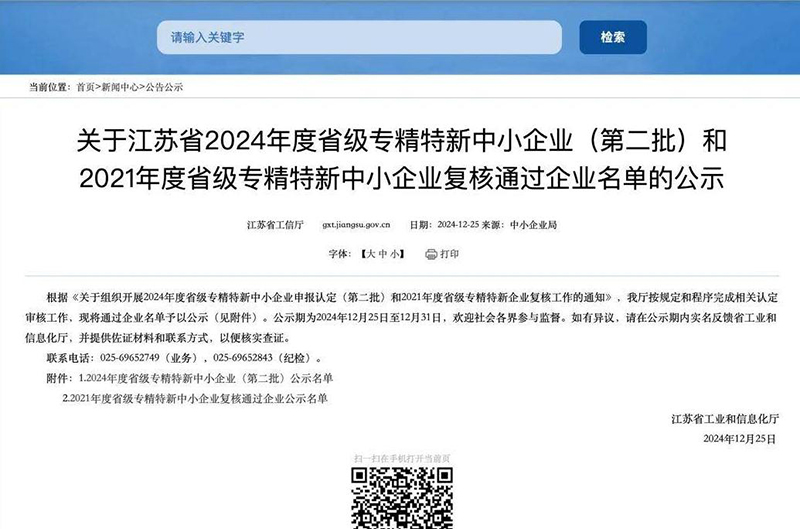 | 被投企業(yè)動態(tài) | 上榜3家!2024年度省級專精特新中小企業(yè)名單公布 |