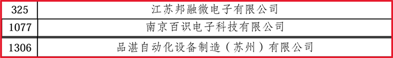 近日,江蘇省工信廳發(fā)布了《關(guān)于江蘇省2024年度省級專精特新中小企業(yè)(第二批)和 2021年度省級專精特新中小企業(yè)復(fù)核通過企業(yè)名單的公示》,江蘇邦融微電子有限公司、南京百識電子科技有限公司、品湛自動化設(shè)備制造(蘇州)有限公司3家創(chuàng)投集團(tuán)被投企業(yè)入選第二批專精特新中小企業(yè)。